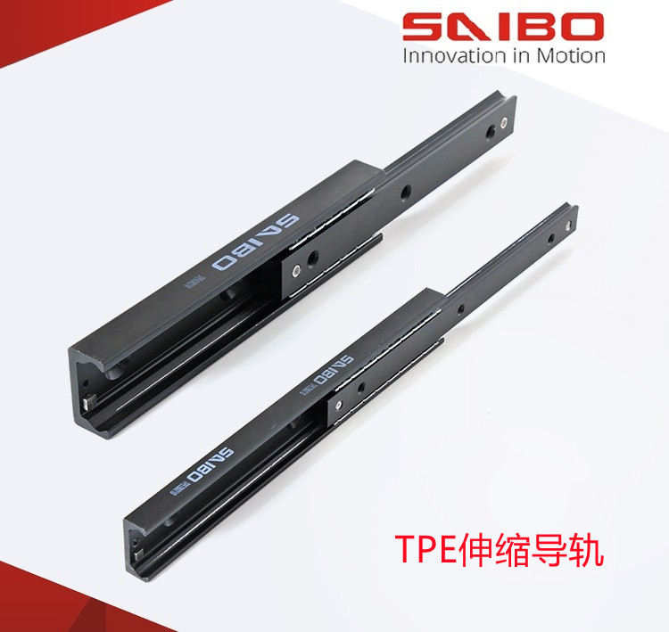 SAIBO的伸縮導軌,高剛度軸承鋼型材結構,高硬耐磨,高壽命,并且保持低擾度。