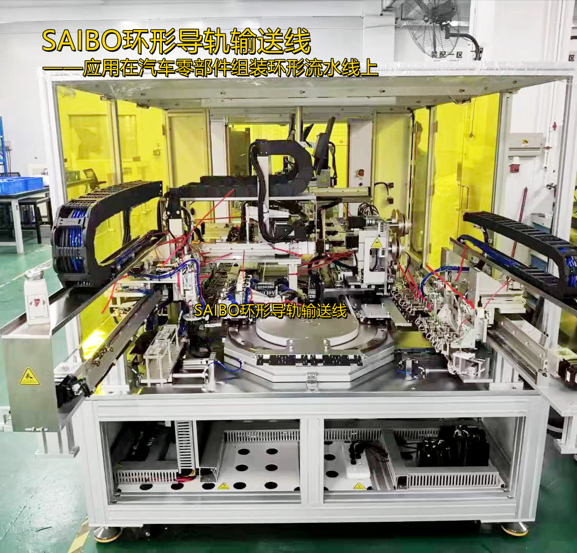 自動化組裝檢測的各工序設備(上下料、零部件組裝、壓接、打螺絲和檢測)全部集成到SAIBO環(huán)形導軌輸送線平臺上,平臺提供各工序間的產(chǎn)品精密傳輸和定位,并且高速度。