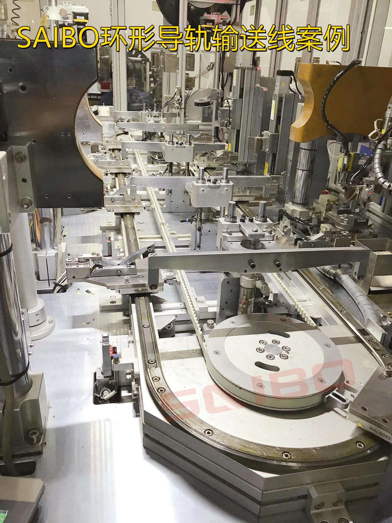 本案例的環(huán)形導(dǎo)軌輸送線采用同步帶驅(qū)動,圓弧直徑612mm,共有10個工序,定位精度達(dá)到±0.05mm。項目的方案經(jīng)過了充分的檢討;標(biāo)準(zhǔn)化的模塊,而且每道制作工程經(jīng)過嚴(yán)格的管控;產(chǎn)品出貨到客戶,調(diào)試一次成功。SAIBO的技術(shù)方案成熟可靠,這就是很多大客戶選擇SAIBO的原因。