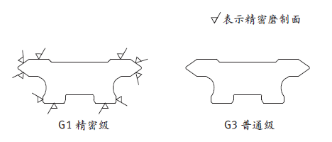 提供精密級G1 和普通級G3 兩個精度級別供用戶選用。 直線與直線對接或直線與圓弧對接使用必須選用精密級導軌。普通級G3導軌運行也非常平穩(wěn)。