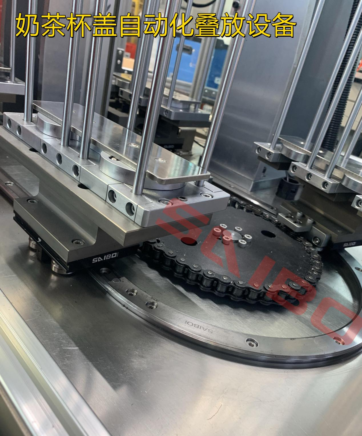 本案例采用了小型的SAIBO環(huán)形導(dǎo)軌輸送線,應(yīng)用在自動(dòng)化疊裝設(shè)備上,作為設(shè)備的輸送平臺(tái),提供快速傳輸。本環(huán)形導(dǎo)軌輸送線,鏈條驅(qū)動(dòng),6個(gè)滑塊(對(duì)應(yīng)6個(gè)工位),滑塊上安裝了疊裝載具,整個(gè)設(shè)備緊湊少占空間。
